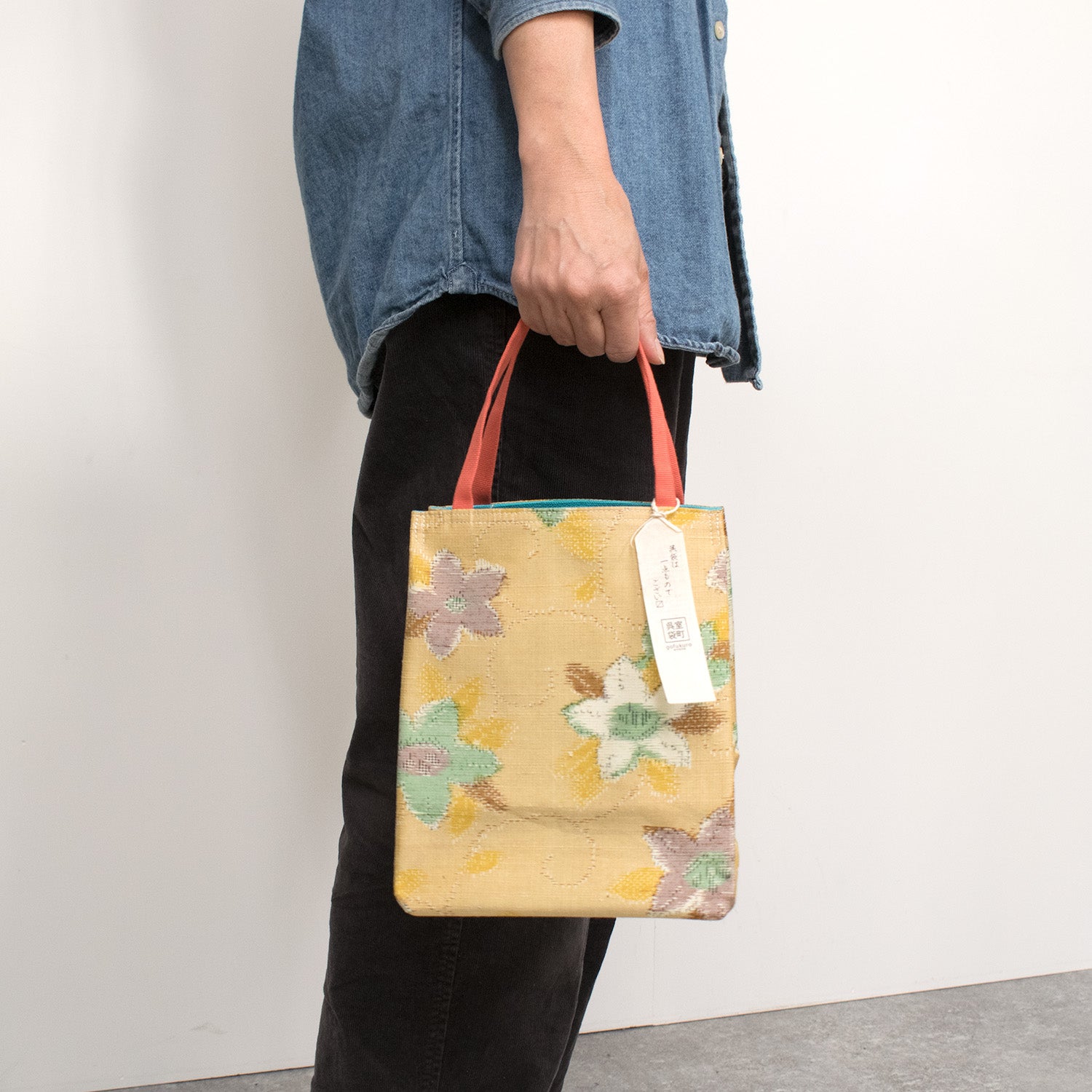 The makers aim to minimize waste by using as much of the vintage fabric as possible. Fabric offcuts are reused when possible, and linings and handles are chosen individually to best match each piece. Handles are often made from strong, beautiful sanada-himo cords, adding both durability and traditional charm.
